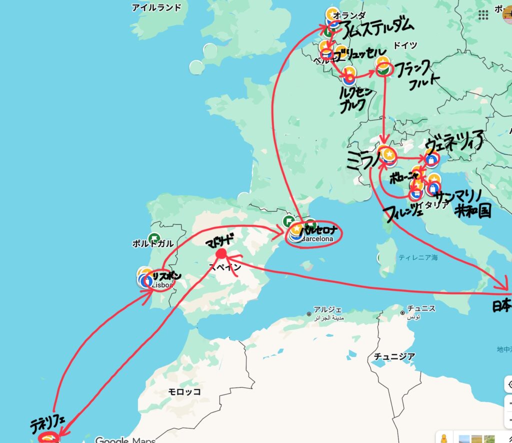 かなり移動は多めですが、西ヨーロッパを中心に効率よく回れるルートになっています。