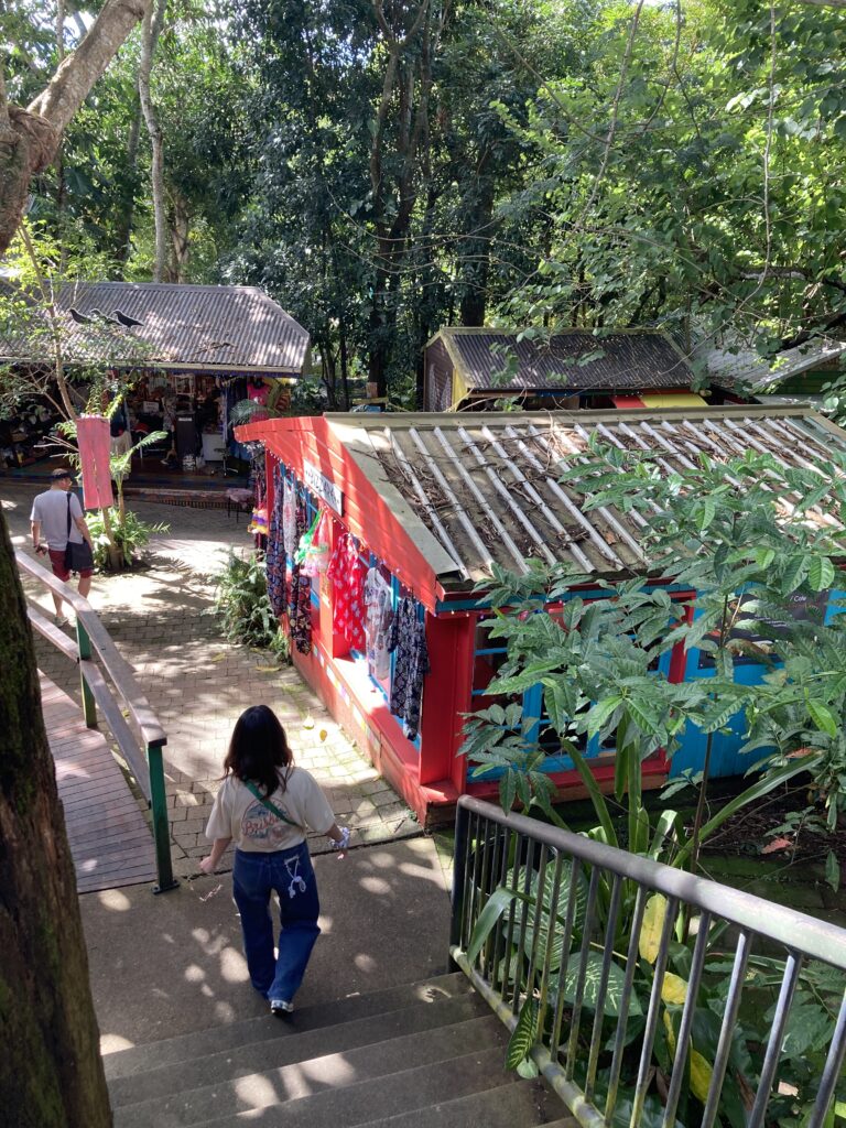 マーケットは熱帯雨林の中に位置し、緑豊かな環境でショッピングを楽しめます。